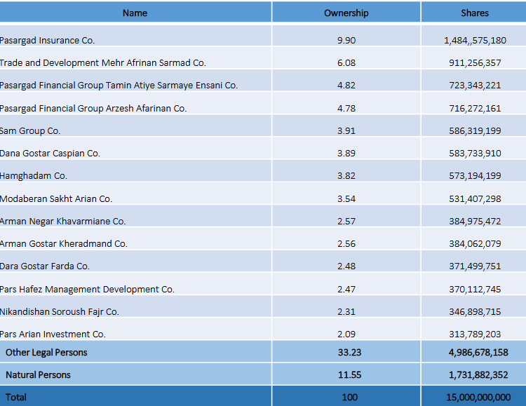 Iranian Re has more than 9,000 Shareholders composed of natural persons and legal entities . Major shareholders of the Company as of 20, December 2024 were as follows
