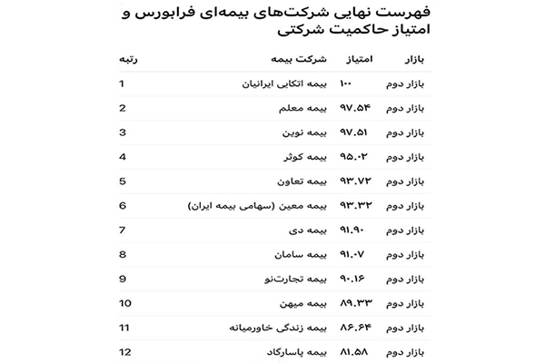 بیمه اتکایی ایرانیان رتبه یک حاکمیت شرکتی